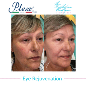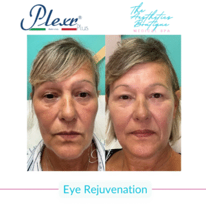 Plexr® is not a laser treatment. While lasers use light energy to penetrate and resurface deeper layers of the skin, Plexr® works with plasma energy — known as the fourth state of matter (an energized gas). The device creates tiny, controlled plasma arcs on the skin’s surface, producing precise micro-injuries that activate the body’s natural healing response. This process naturally tightens and lifts the skin while stimulating the production of type I and type III collagen — the two key types responsible for firmness, elasticity, and skin regeneration. Unlike lasers that burn or vaporize tissue, Plexr® achieves results without cutting, burning, or removing skin. Because it only targets the very surface, Plexr® is especially safe for delicate areas such as the eyelids, crow’s feet, and fine lines around the mouth. Compared to many laser treatments, it generally involves less downtime, fewer risks of pigmentation changes, and a more natural healing process.